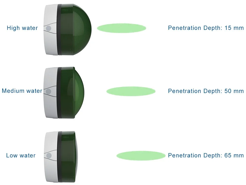 Колкото по-високо е нивото на водата, толкова по-плитко е проникването на апликатора